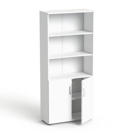 5 rendező magas, kombinált szekrény, ajtós és nyitott polcos részekkel