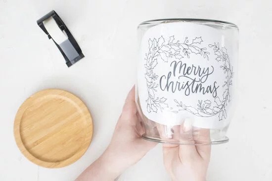 Állítsuk be a sablon nyomtatási méretét, majd nyomtassuk ki. A nyomtatás után vágjuk körbe a mintát és tisztítsuk meg az üvegedényt. A karácsonyi minta innen tölthető le.