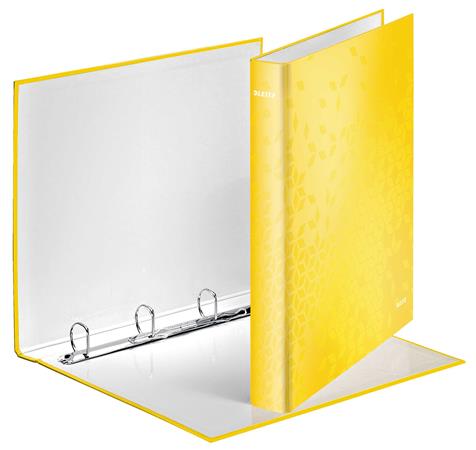 Gyűrűs könyv, 4 gyűrű, D alakú, 40 mm, A4 Maxi, karton, LEITZ "Wow", sárga