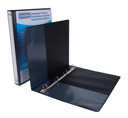 Gyűrűs könyv, panorámás, 4 gyűrű, D alakú, 44 mm, A4, PP, DONAU, fekete