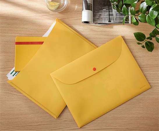 KezdőlapIrodaszerekIratrendezés, archiválásIratvédő tasakok és borítékokIrattartó tasak, 2 zsebes, A4, PP, pantentos, LEITZ "Cosy", melegsárga