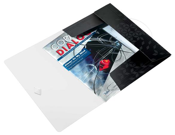 - tetszetős gumiszalagos záródás a dokumentumok biztonságos szállításához