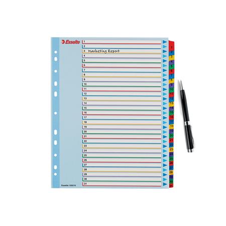 Regiszter, laminált karton, A4 Maxi, 1-31, újraírható, ESSELTE