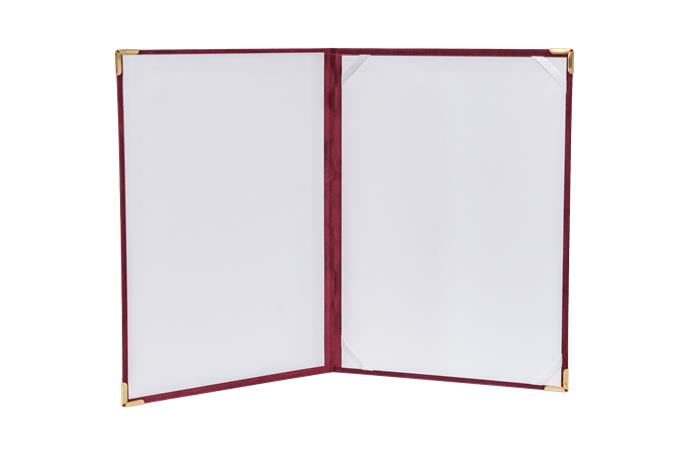 Oklevéltartó, A4, exkluzív, plüss, 4 fém sarokkal, bordó