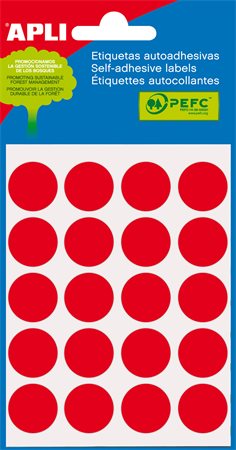 Etikett, 19 mm kör, kézzel írható, színes, APLI, piros, 100 etikett/csomag