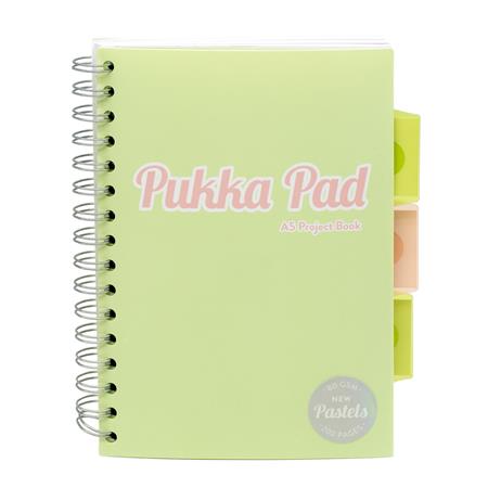 Spirálfüzet, A5, vonalas, 100 lap, PUKKA PAD "Pastel project book", vegyes szín