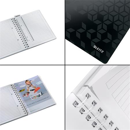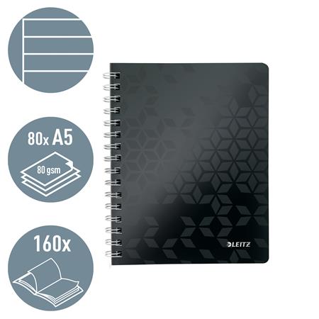Spirálfüzet, A5, vonalas, 80 lap, LEITZ "Wow", fekete