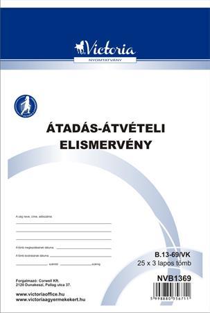 Nyomtatvány, átadás-átvételi elismervény, 25x3, A5, VICTORIA PAPER "B.13-69", 10 tömb/csomag