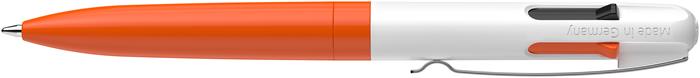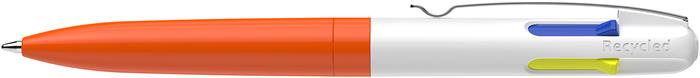 Golyóstoll, 0,5 mm, nyomógombos, négyszínű, SCHNEIDER "Take 4 Neon", narancs-fehér