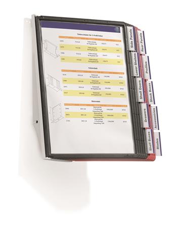 Bemutatótábla tartó, fali, 10 db bemutatótáblával, DURABLE "SHERPA WALL", piros