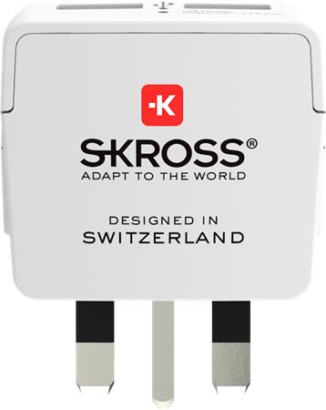 Skross UK csatlakozó átalakító és USB töltő egyben, Európából Egyesült Királyságokba utazóknak. A 2 x USB bemenet lehetővé teszi az okostelefon és táblagép egyidejű töltését, míg egyidejűleg földelt eszközzel is használhatjuk (laptop, hajszárító).