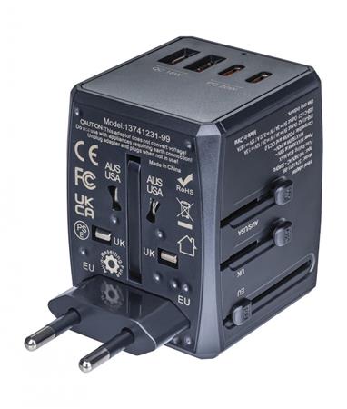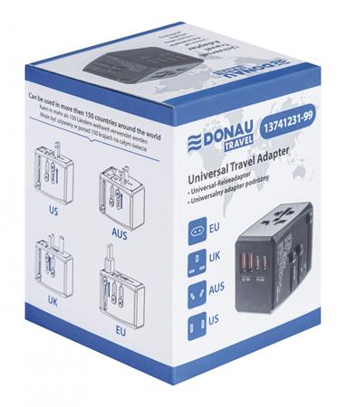 Utazóadapter, univerzális, gyorstöltő, DONAU "Travel 904", fekete