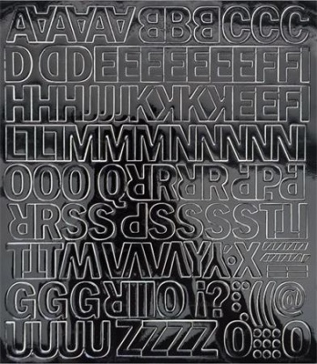 Öntapadós vinil tapétából hőpréssel stancolt betűlap.